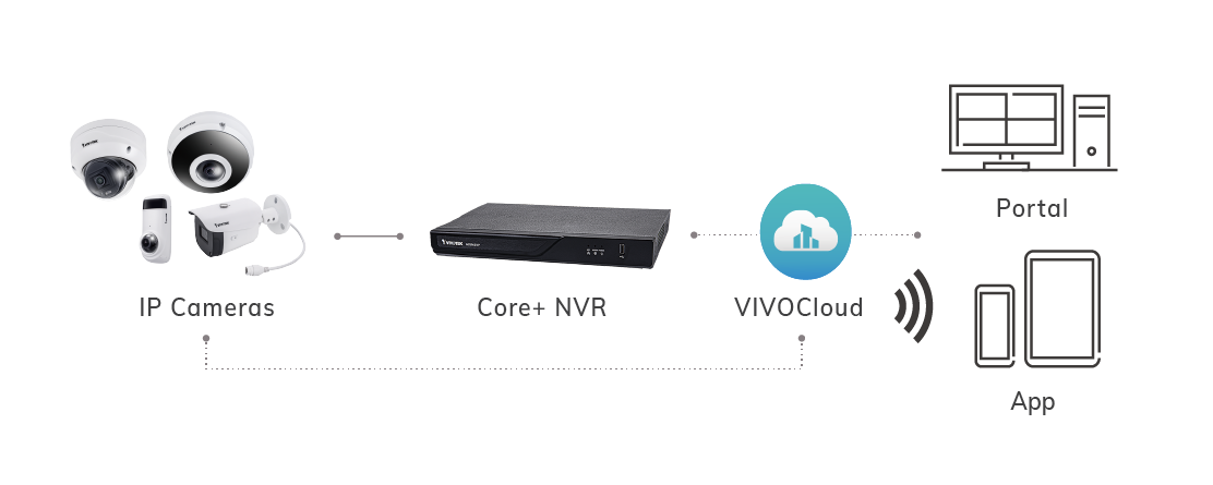 VIVOCloud es un servicio en la nube liviano diseñado exclusivamente para propietarios de PYMES. Se puede acceder al servicio multiplataforma con dispositivos iOS y Android, y también es compatible con portales basados en web tanto en Windows como en Mac. VIVOCloud admite una fácil conexión con las cámaras IP y NVR de la serie ND de VIVOTEK. Construido con AWS, VIVOCloud vigila las cosas que valoras y envía alertas a tu dispositivo móvil dondequiera que estés.