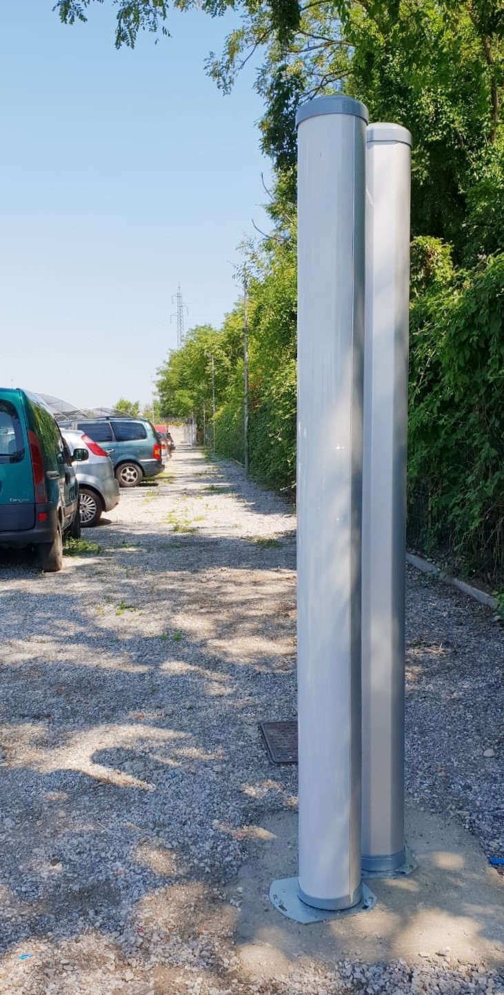 Columna de microondas ideal para proteger perímetros donde el espacio es limitado, ya que solo se necesita 1m de espacio libre, además es, a diferencia de las barreras infrarrojas (que son utilizadas normalmente para proteger sitios estrechos) inmune a las condiciones climáticas como la temperatura, la niebla etc.