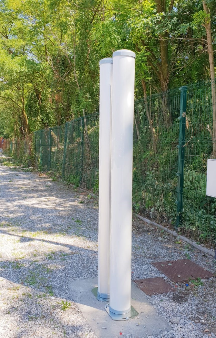 Columna de microondas ideal para proteger perímetros donde el espacio es limitado, ya que solo se necesita 1m de espacio libre.