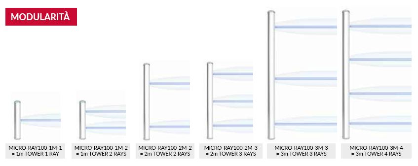 MICRO-RAY utiliza antenas especiales de 24Ghz con tecnología Fuzzy-Logic (análisis de señal) por lo que se obtiene la mejor detección sin falsas alarmas. Permiten un montaje de hasta 4 unidades (antenas) independientes en la misma columna sin interferencias.