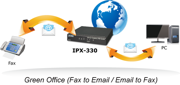 El servicio de fax a correo electrónico/correo electrónico a fax proporcionado por el IPX-330 permite a los usuarios transferir y recibir faxes directamente hacia o desde su bandeja de entrada de correo electrónico como archivos adjuntos. Es una forma fácil y confidencial de recibir, almacenar y reenviar documentos de fax importantes, creando así una oficina verde sin papel.