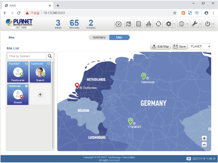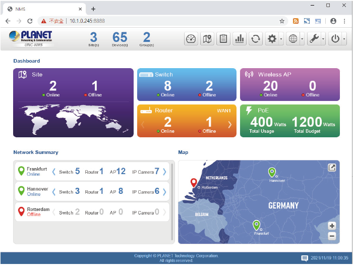 La solución PLANET NMS cuenta con un panel intuitivo, topología y visualización de mapas para que la gestión de la red sea eficiente y eficaz.
