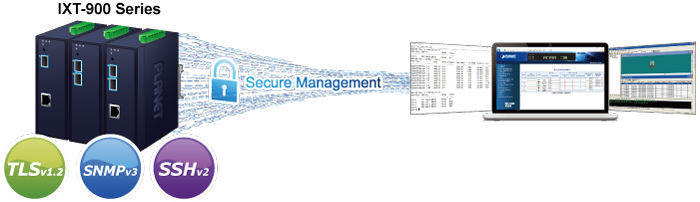 El IXT-900-2X1PD está equipado con funciones de ciberseguridad mejoradas para defenderse de las amenazas y los ataques cibernéticos. Admite los protocolos SSHv2, TLSv1.2 y SNMPv3 para brindar una sólida protección contra amenazas avanzadas. Para transmitir de forma segura datos críticos a colegas o clientes a través de cableado de fibra óptica, la función de ciberseguridad del IXT-900-2X1PD protege la gestión de la red y mejora la seguridad de las redes de misión crítica sin incurrir en ningún esfuerzo o costo de implementación adicional.