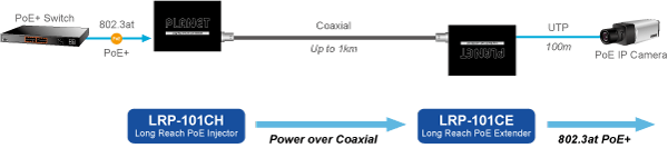 La solución PoE de largo alcance de PLANET Technology permite a todas las empresas y proveedores de servicios de red configurar una infraestructura IP en una ubicación remota donde los dispositivos alimentados con PoE 802.3af/at pueden recibir datos y energía a través de conmutadores PLANET y extensores e inyectores LRP PLANET a una gran distancia, pero sin limitarse a los 100 metros habituales.