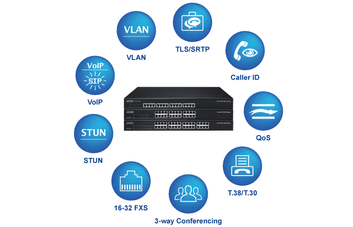 La puerta de enlace VoIP SIP de 16 puertos de clase empresarial PLANET VGW-1620FS proporciona una mayor flexibilidad durante la migración a las comunicaciones unificadas al admitir los dispositivos analógicos tradicionales. Estos dispositivos incluyen teléfonos analógicos, máquinas de fax, módems, sistemas de correo de voz y altavoces.