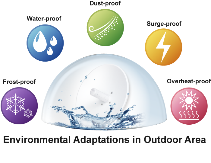 Para alcanzar la máxima confiabilidad en entornos hostiles, el WBS-900AC no solo viene con una carcasa con clasificación IP65, sino que también adopta la solución de chipset Qualcomm, capaz de soportar un amplio rango de temperaturas de -40 a 70 grados C. Diseñado con el esquema de alimentación IEEE 802.3at PoE+ (Power over Ethernet), el WBS-900AC se puede instalar fácilmente en áreas donde no hay tomas de corriente disponibles. Además, también es adecuado para integrarse con el sistema PoE con energía renovable PLANET para ofrecer un servicio inalámbrico más amplio en áreas remotas.