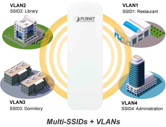 El WBS-512AC admite WPA/WPA2 y la autenticación RADIUS 802.1X para proteger la conexión inalámbrica. Además, la VLAN IEEE 802.1Q compatible permite asignar múltiples etiquetas VLAN a múltiples SSID para distinguir el acceso inalámbrico. Esto permite que el WBS-512ACN funcione con conmutadores Ethernet administrados para tener VLAN asignadas a un nivel de acceso y autoridad diferentes.
