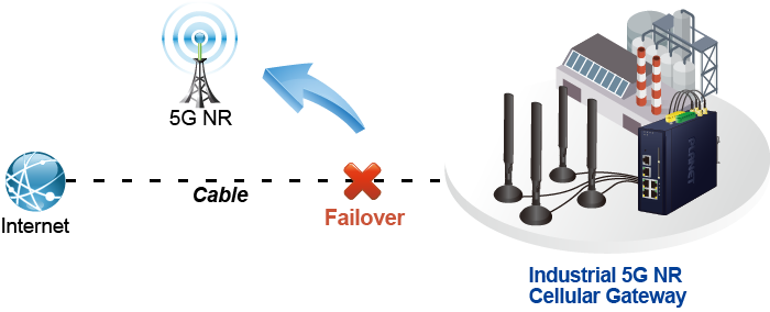 Diseñado con 5G NR e interfaces WAN duales (fibra y cobre), 1000X SFP y Gigabyte Ethernet, el ICG-2515FW-NR garantiza la conectividad a Internet al contar con una funcionalidad de conmutación por error entre 5G NR y WAN dual. El ICG-2515FW-NR brinda flexibilidad para establecer la prioridad para la conexión 5G NR o WAN dual. Cuando falla la interfaz WAN principal, la interfaz WAN secundaria respaldará automáticamente la conexión para garantizar una conectividad permanente.