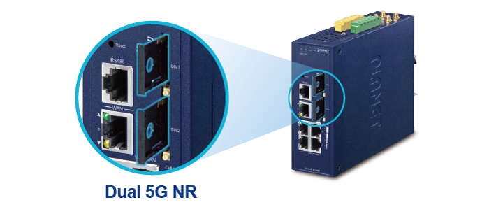 Para mejorar la confiabilidad, el ICG-2515FW-NR está equipado con ranuras para SIM dual que admiten conmutación por error y roaming para garantizar una conectividad ininterrumpida para comunicaciones celulares de misión crítica. Proporciona una forma más flexible y sencilla para que los usuarios creen un servicio de uso compartido de red instantáneo a través de 5G-NR en lugares públicos como transportes, eventos al aire libre, etc.