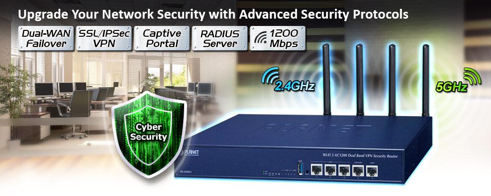 La innovación de Internet ha creado enormes oportunidades a nivel mundial para el comercio electrónico y el intercambio de información. Se ha vuelto esencial que las empresas se centren más en los problemas de seguridad de la red. La demanda de seguridad de la información y conexión inalámbrica se ha convertido en la principal preocupación de las empresas. Para satisfacer esta demanda, PLANET ha lanzado los enrutadores de seguridad VPN inalámbricos todo en uno VR-300W5 y VR-300PW5 que incluyen varias categorías principales en sus implementaciones de seguridad de red: 802.11ac, ciberseguridad, protección de seguridad de firewall SPI, auditoría de políticas (filtrado de contenido, túnel VPN y filtrado MAC/IP), controlador de AP, portal cautivo, RADIUS y fácil administración (asistente de configuración, servidor DHCP y panel de control). Además, sus funciones de conmutación por error de WAN dual, equilibrio de carga saliente y alta disponibilidad pueden mejorar la eficiencia de la red, mientras que la interfaz basada en la web proporciona una experiencia de usuario amigable y consistente.