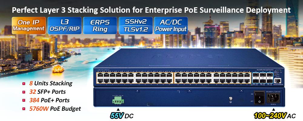 Para satisfacer las necesidades de las aplicaciones de red PoE que requieren mayor potencia con transmisión de velocidad Gigabit, el SGS-6310-48P6XR cuenta con Gigabit IEEE 802.3at PoE+ de alto rendimiento (hasta 30 vatios) en todos los puertos. Cumple perfectamente con los requisitos de energía de los teléfonos VoIP PoE y todo tipo de cámaras IP PoE, como IR, PTZ, cámaras domo de velocidad o incluso cámaras IP tipo caja con ventilador y calentador integrados.