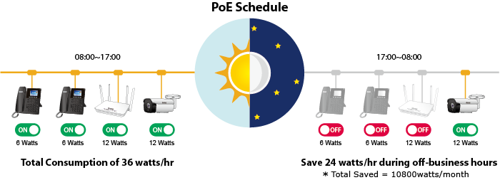 Además de usarse para vigilancia IP, el SGS-6310-24P4X es ciertamente aplicable para construir cualquier red PoE, incluidas VoIP y LAN inalámbrica. En el marco de la tendencia mundial de ahorro de energía y contribuyendo a la protección del medio ambiente en la Tierra, el SGS-6310-24P4X puede controlar eficazmente la fuente de alimentación, además de su capacidad de proporcionar una alta potencia en vatios. La función "Programación PoE" le ayuda a habilitar o deshabilitar la alimentación de energía PoE para cada puerto PoE durante intervalos de tiempo específicos y es una función poderosa para ayudar a las PYMES o empresas a ahorrar energía y presupuesto.