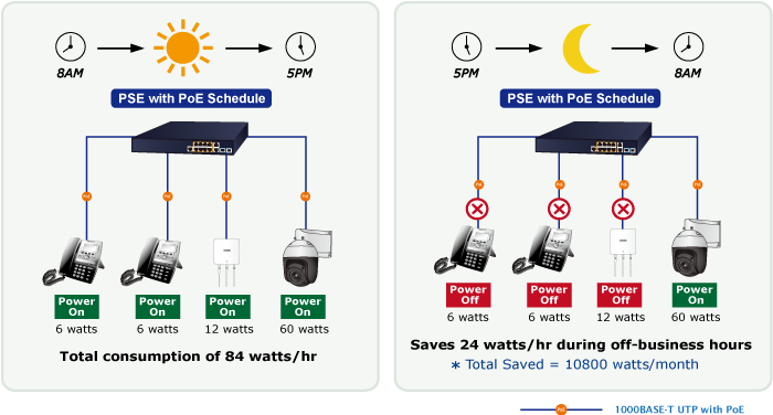 Además de usarse para vigilancia IP, el GS-5220-8UP2T2X es ciertamente aplicable para construir cualquier red PoE, incluidas VoIP y LAN inalámbrica. En el marco de la tendencia mundial de ahorro de energía y de contribución a la protección del medio ambiente en la Tierra, el GS-5220-8UP2T2X puede controlar eficazmente la fuente de alimentación, además de su capacidad de proporcionar una alta potencia en vatios. La función de "programación de PoE" le ayuda a habilitar o deshabilitar la alimentación de energía PoE para cada puerto PoE durante intervalos de tiempo específicos y es una función poderosa para ayudar a las PYMES y empresas a ahorrar energía y presupuesto.