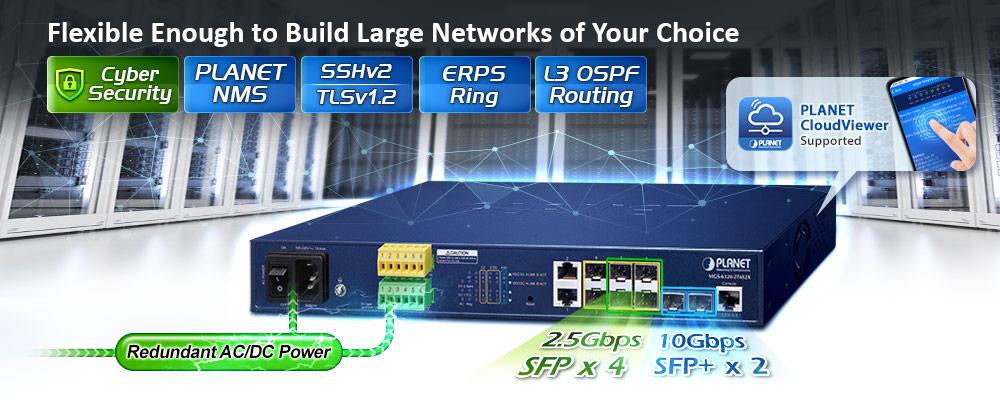 Ethernet de 10 G es un gran salto en la evolución de Ethernet. Cada una de las ranuras SFP+ de 10 G en el MGS-6320-2T6S2X admite triple velocidad y 10GBASE-SR/LR o 2500BASE-X y 1000BASE-SX/LX. Con su capacidad de enlace Ethernet de 2 puertos y 10 G, el administrador ahora puede elegir de manera flexible el transceptor SFP/SFP+ adecuado según la distancia de transmisión o la velocidad de transmisión requerida para ampliar la red de manera eficiente. El MGS-6320-2T6S2X proporciona un amplio ancho de banda y una potente capacidad de procesamiento