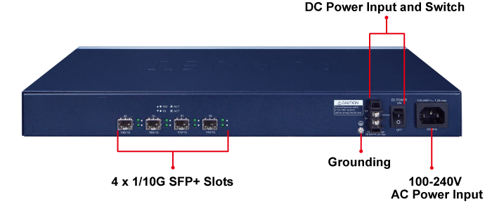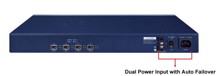 El GS-6320-46S2C4XR está equipado con una unidad de alimentación de CA de 100~240 V y una unidad de alimentación de CC adicional de 36-60 V para una alimentación redundante. También se proporciona un sistema de alimentación redundante para mejorar la fiabilidad con una unidad de alimentación de CA o CC. El sistema de alimentación redundante está diseñado específicamente para gestionar las demandas de instalaciones de alta tecnología que requieren la máxima integridad de la alimentación.