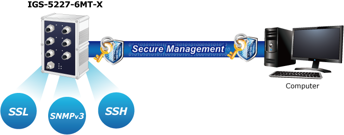 Con una interfaz de gestión basada en Web integrada, el conmutador gestionable L2+ IGS-5227-6MT-X ofrece una función de gestión y configuración fácil de usar e independiente de la plataforma que incluye interfaces de gestión Web y SNMP. El SNMP se puede gestionar a través de cualquier software de gestión basado en el estándar del protocolo SNMP. Para reducir el tiempo de aprendizaje del producto, ofrece comandos similares a los de Cisco a través de Telnet y el cliente no necesita aprender nuevos comandos de consola. Además, también ofrece administración remota segura al admitir conexiones SSH, SSL y SNMP v3 que cifran el contenido de los paquetes en cada sesión.
