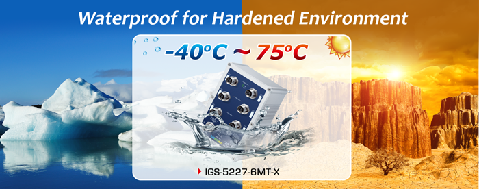 El IGS-5227-6MT-X puede protegerse a sí mismo de la entrada de polvo y agua, y funcionar en un rango de temperatura de -40 a 75 grados C. Todas estas características garantizan el más alto nivel de confiabilidad para aplicaciones de misión crítica en cualquier entorno difícil.