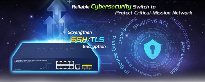 El GS-4210-8T2S admite los protocolos SSHv2 y TLS para brindar una protección sólida contra amenazas avanzadas. Incluye una variedad de funciones de ciberseguridad como DHCP Snooping, ARP Inspection Protection, control de acceso a la red y basado en puertos 802.1x, administración de cuentas de usuario RADIUS y TACACS+, autenticación SNMPv3, etc. para complementarlo como una solución de seguridad integral.