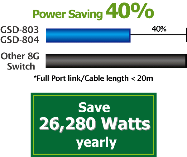 El GSD-803 incorpora dos tecnologías avanzadas de redes ecológicas y puede proporcionar ahorros de energía de hasta un 40%, pero mantiene un alto rendimiento de manera eficiente.