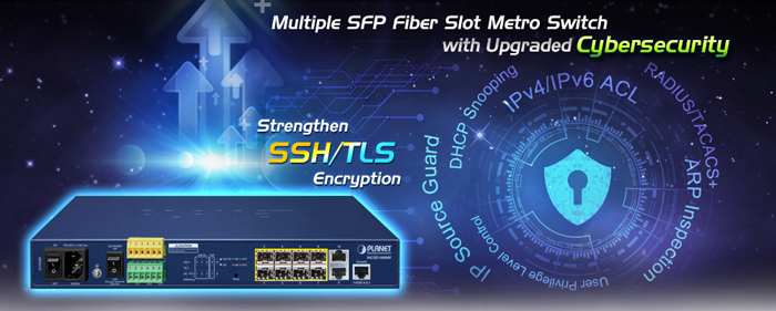 El MGSD-10080F admite los protocolos SSHv2 y TLS para brindar una protección sólida contra amenazas avanzadas. Incluye una variedad de funciones de ciberseguridad como DHCP Snooping, IP Source Guard, ARP Inspection Protection, control de acceso a la red basado en puertos 802.1x, administración de cuentas de usuario RADIUS y TACACS+, autenticación SNMPv3, etc. para complementarlo como una solución de seguridad integral.