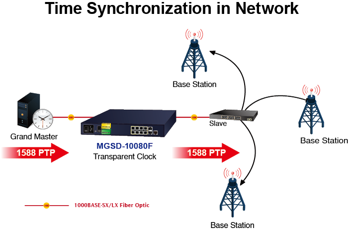 El MGSD-10080F es ideal para aplicaciones de telecomunicaciones y Carrier Ethernet, ya que admite la entrega de servicios MEF y la sincronización a través de soluciones de paquetes para IEEE 1588 y Ethernet sincrónica.