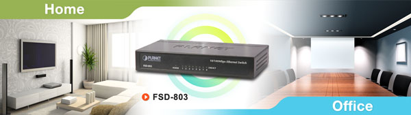 El switch Fast Ethernet FSD-803 de PLANET ofrece a los usuarios domésticos y empresariales un sistema integrado y rentable de redes para pequeñas oficinas y oficinas domésticas. Tiene un diseño de carcasa metálica de tamaño compacto y es perfecto para redes de entre 10 y 50 usuarios.