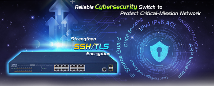 El GS-4210-16P2S admite los protocolos SSHv2 y TLS para brindar una protección sólida contra amenazas avanzadas. Incluye una variedad de funciones de ciberseguridad como DHCP Snooping, IP Source Guard, protección de inspección ARP dinámica, control de acceso a la red basado en puertos 802.1x, administración de cuentas de usuario RADIUS y TACACS+, autenticación SNMPv3, etc. para complementarlo como una solución de seguridad integral.