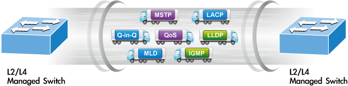 El GS-4210-8P2C se puede programar para funciones avanzadas de administración de conmutadores, como agregación de enlaces de puertos dinámicos, VLAN 802.1Q y VLAN Q-in-Q, protocolo de árbol de expansión múltiple (MSTP), protección de bucle y BPDU, detección de IGMP y detección de MLD. A través de la agregación de enlaces, el GS-4210-8P2C permite la operación de un enlace troncal de alta velocidad para combinarlo con varios puertos y también admite conmutación por error. Además, el Protocolo de descubrimiento de capa de enlace (LLDP) es el protocolo de capa 2 incluido para ayudar a descubrir información básica sobre los dispositivos vecinos en el dominio de transmisión local.