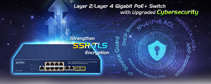 El GS-4210-8P2C admite los protocolos SSHv2 y TLS para brindar una protección sólida contra amenazas avanzadas. Incluye una variedad de funciones de ciberseguridad como DHCP Snooping, IP Source Guard, ARP Inspection Protection, control de acceso a la red basado en puertos 802.1x, administración de cuentas de usuario RADIUS y TACACS+, autenticación SNMPv3, etc. para complementarlo como una solución de seguridad integral.